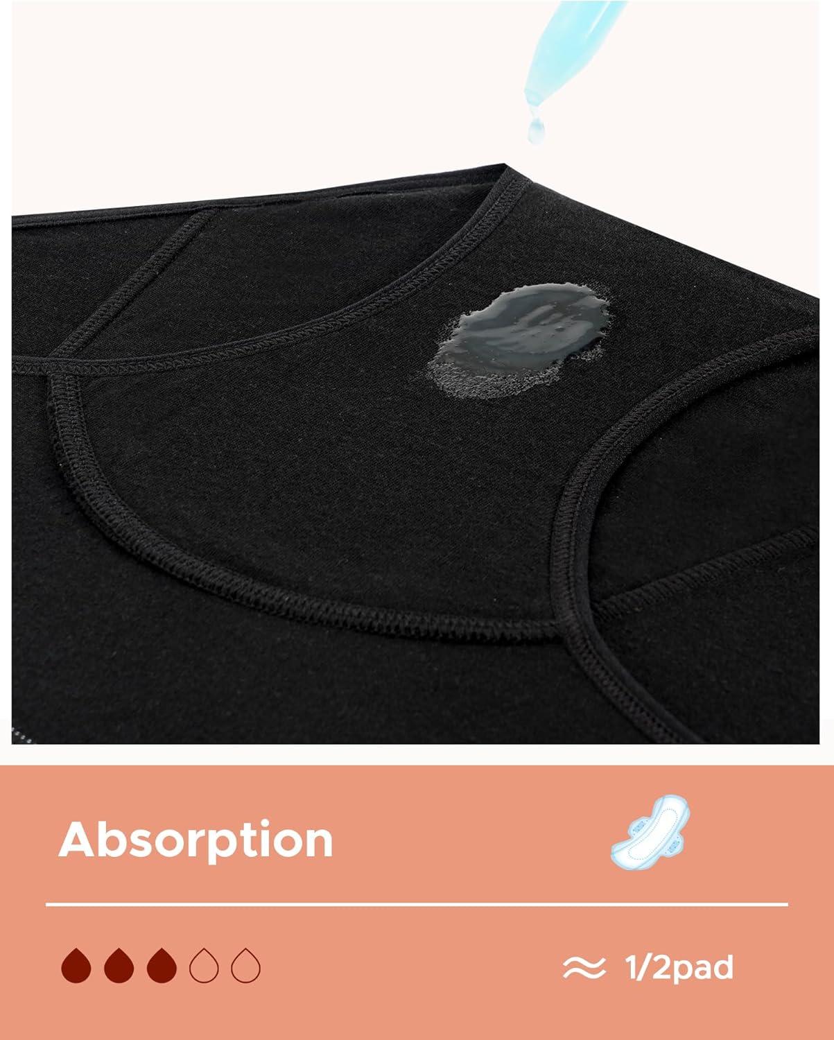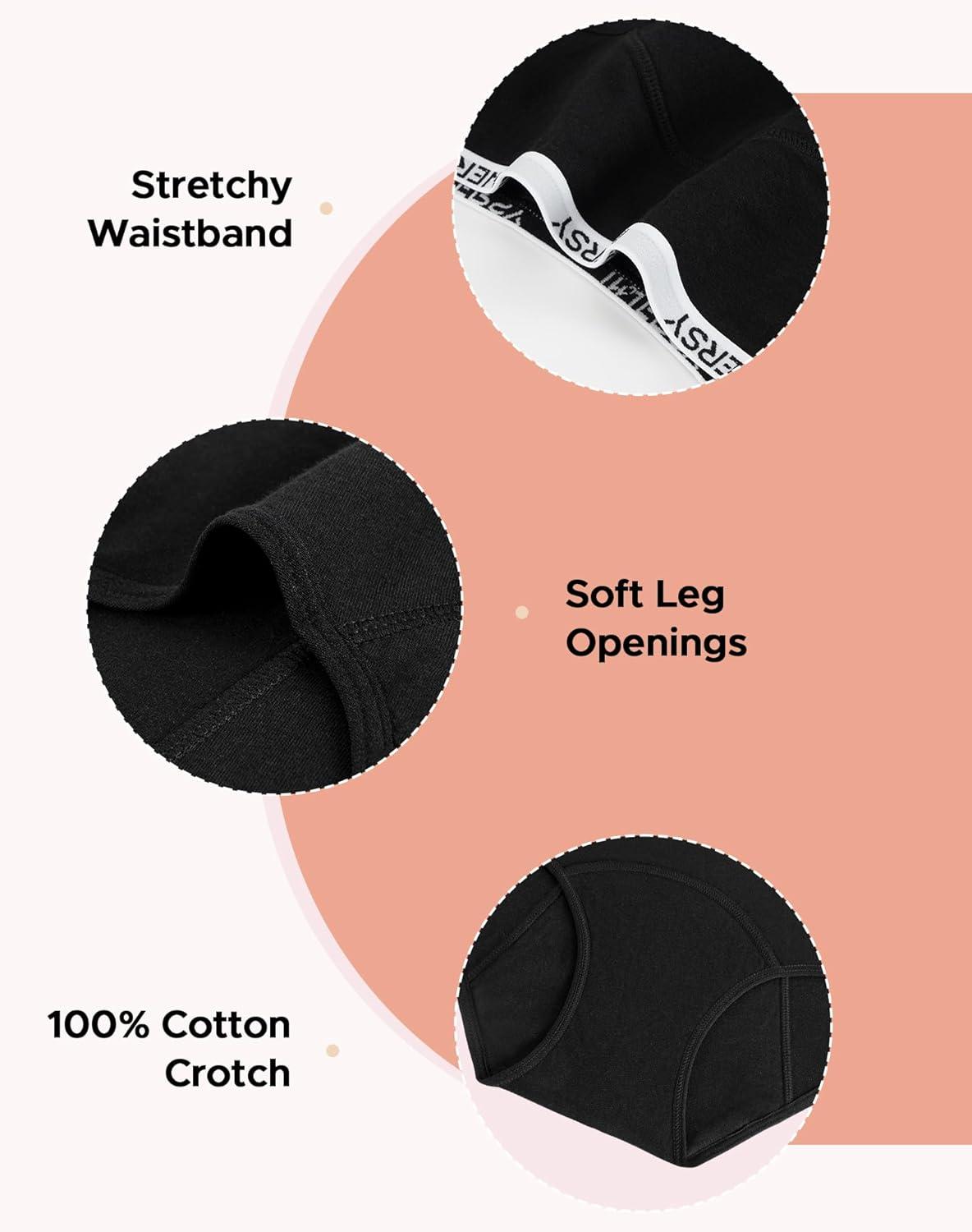 INNERSY Period Underwear for Teens Girls Cotton Leak-Proof Menstrual Panties 3-Pack(Black)
