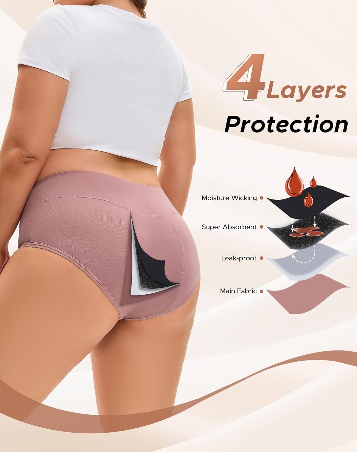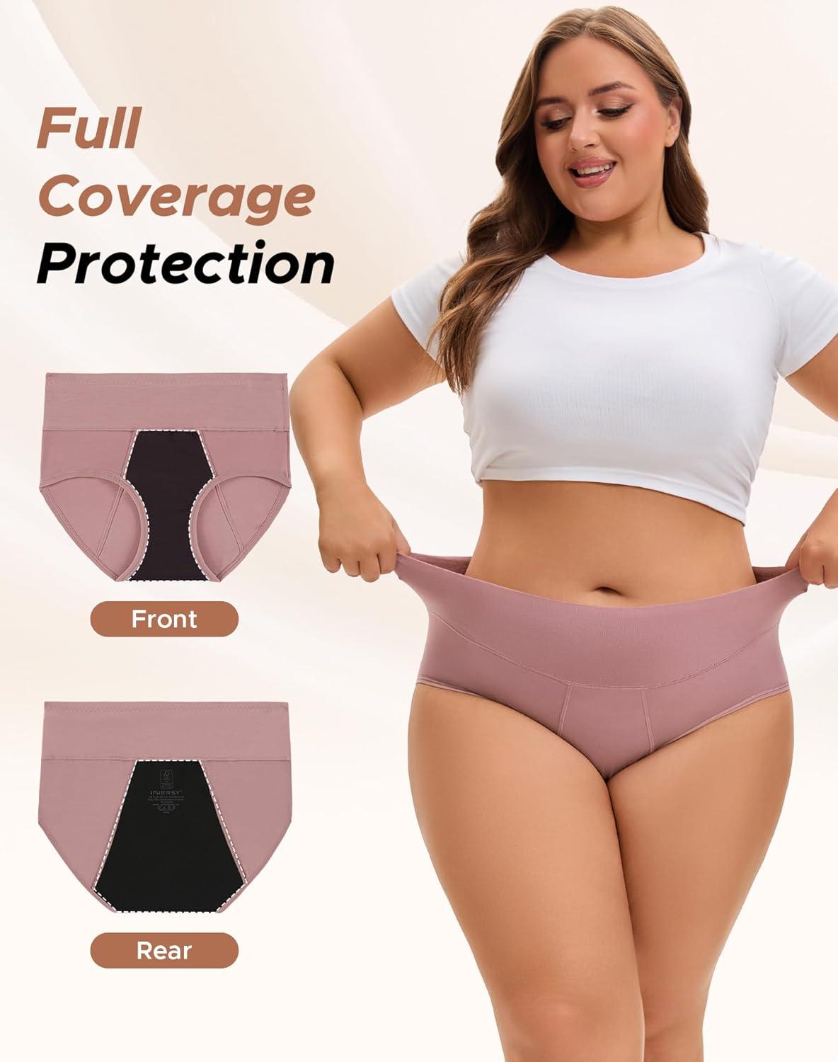 INNERSY Period Underwear for Women Plus Size Heavy Flow Leak-proof Menstrual High Waisted Absorbent Panties 3-Pack(Retro)
