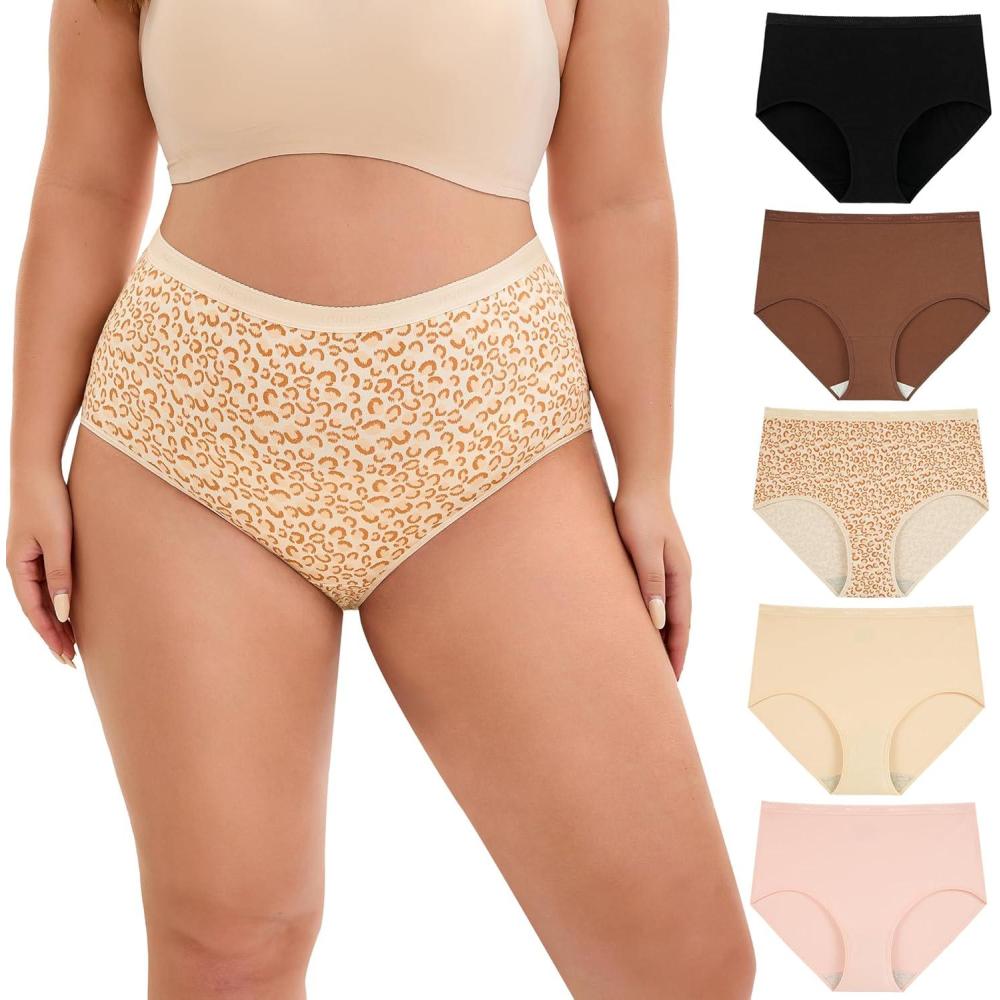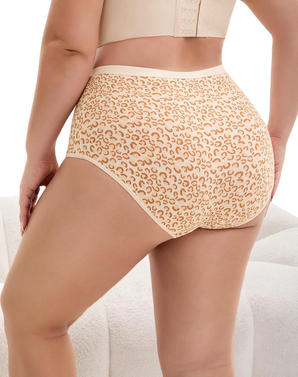 INNERSY Plus Size XL-5XL Big Curvy Woman Cotton Underwear High Waist Briefs 5-Pack(Leopard Print)