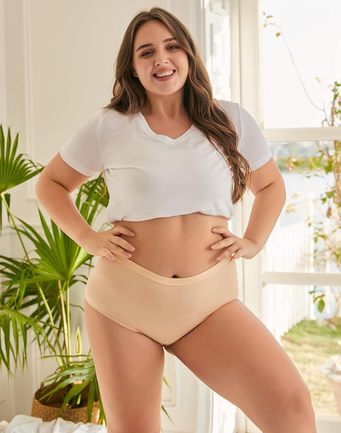 INNERSY Plus Size XL-5XL Big Curvy Woman Cotton Underwear High Waist Briefs 5-Pack(Light Mist)