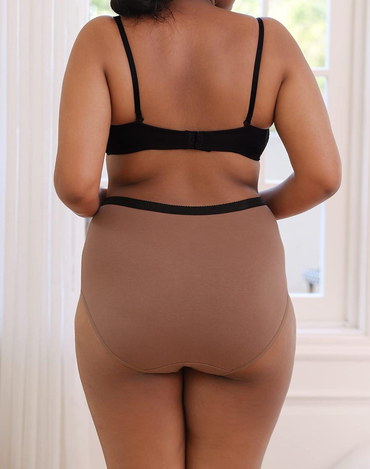 INNERSY Plus Size XL-5XL Big Curvy Woman Cotton Underwear High Waist Briefs 5-Pack(Sandy Beach)