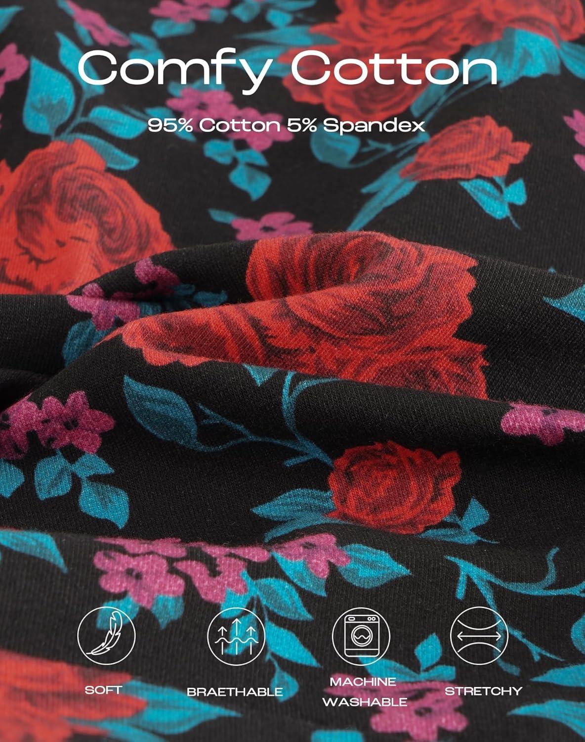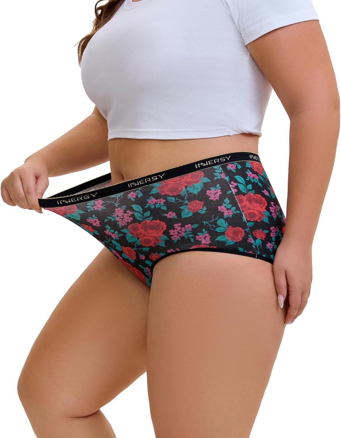 INNERSY Plus Size XL-5XL Big Curvy Woman Cotton Underwear High Waist Briefs 5-Pack(Velvetrose)