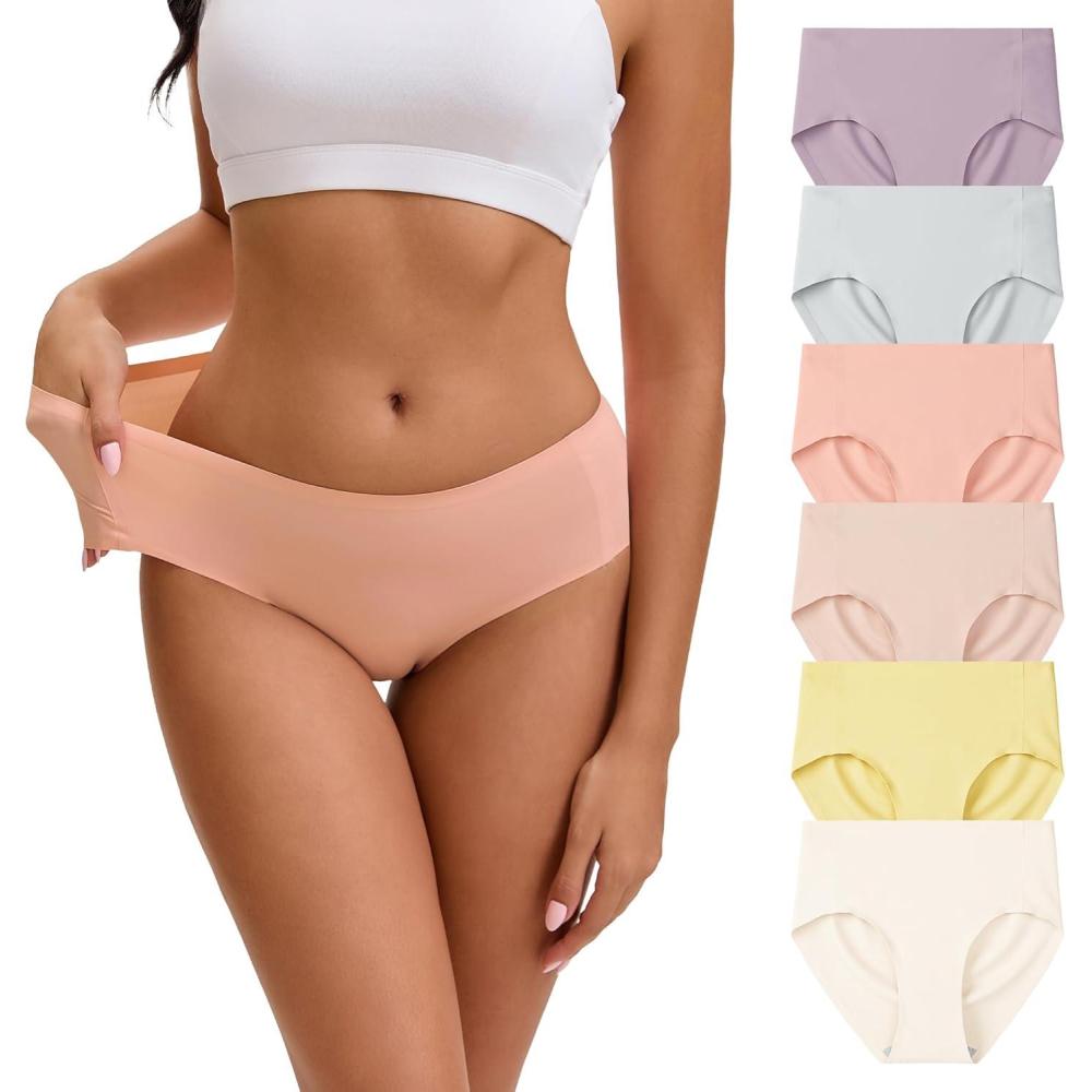 INNERSY Seamless Underwear for Women No Show Bikini Panties Invisible Breathable Hipster 6-Pack(Mirage Vivid)