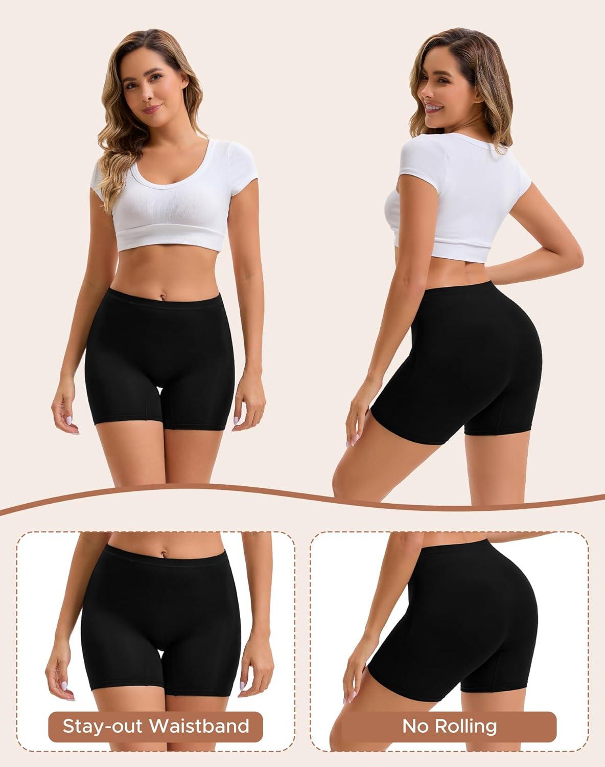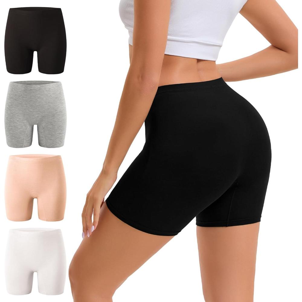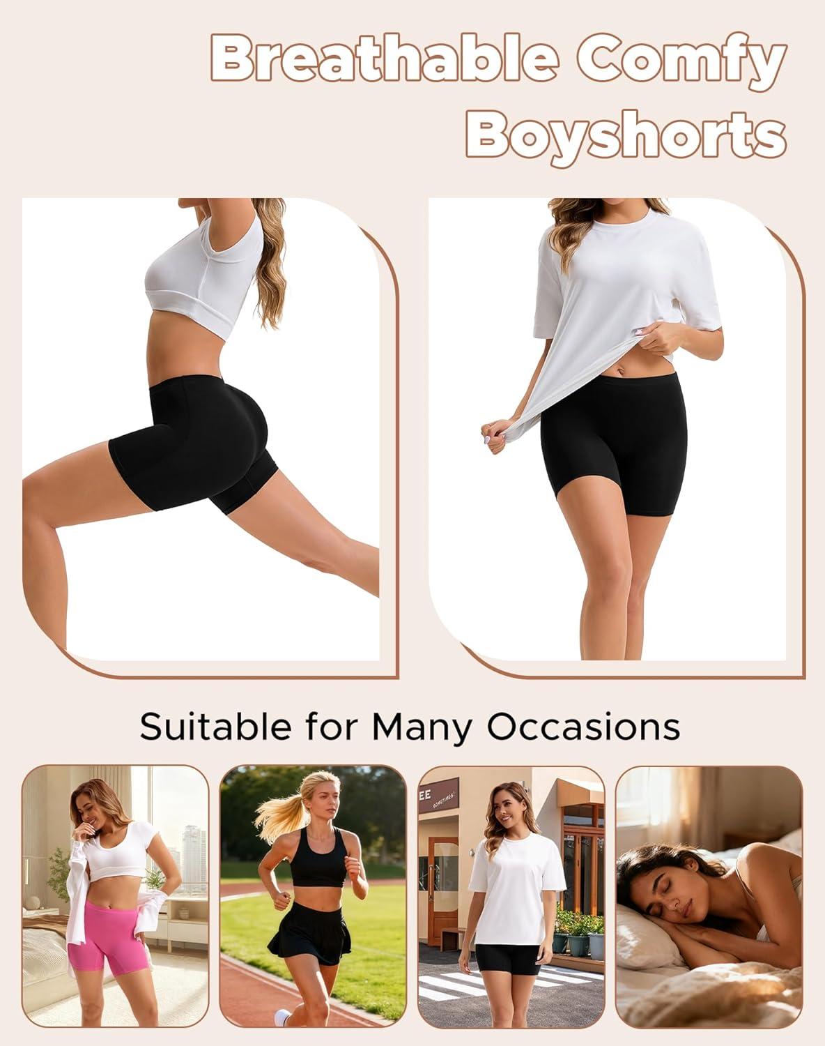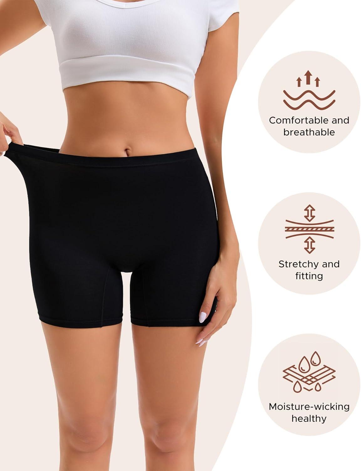 INNERSY Women’s Cotton Boyshort Underwear High Waisted Anti Chafing Shorts Soft Panties 4 Pack(Vibrant Hues)