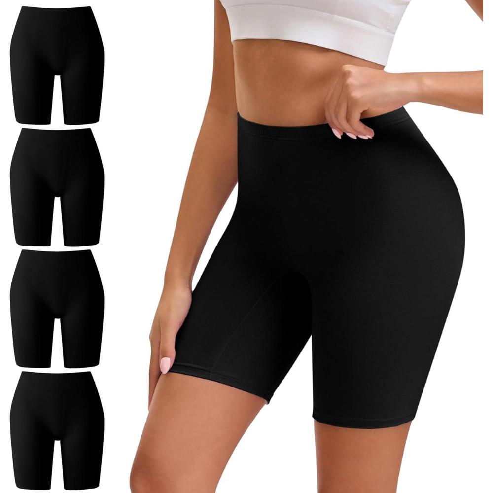INNERSY Women's Cotton Boyshort Underwear High Waisted Anti Chafing Shorts Soft Panties 4 Pack(Black)