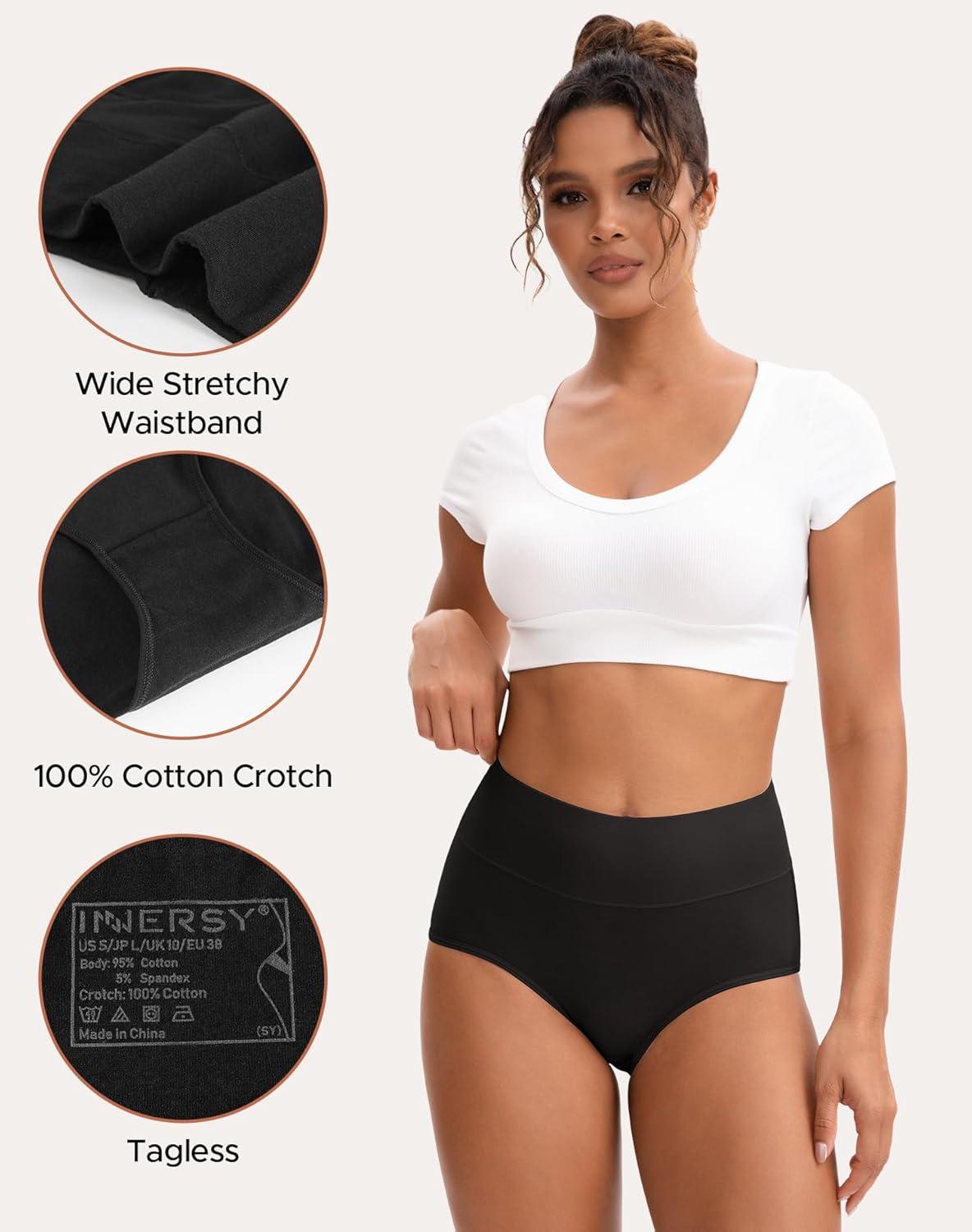 imageINNERSY Womens High Waisted Underwear Cotton Panties Regular ampamp Plus Size 5Pack5 Black