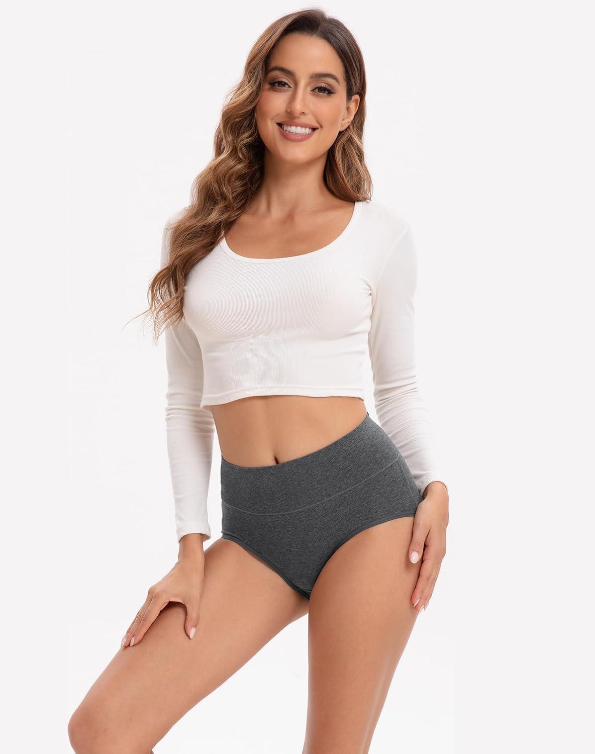 INNERSY Women’s High Waisted Underwear Cotton Panties Regular & Plus Size 5-Pack(Darks 1)