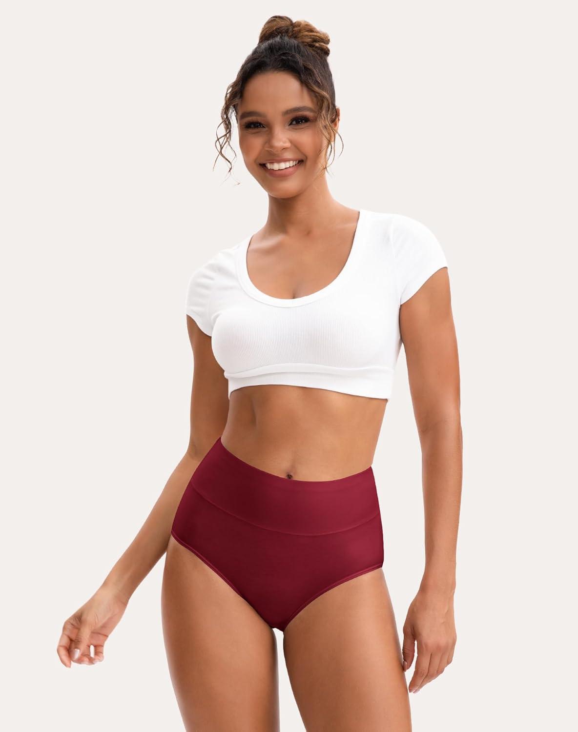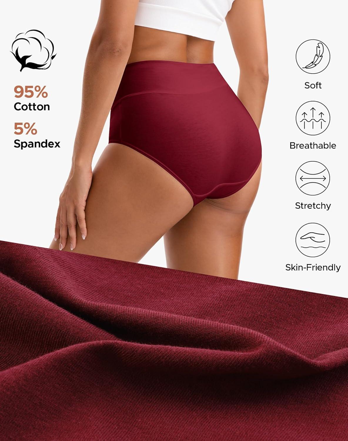 INNERSY Women’s High Waisted Underwear Cotton Panties Regular & Plus Size 5-Pack(Basics)