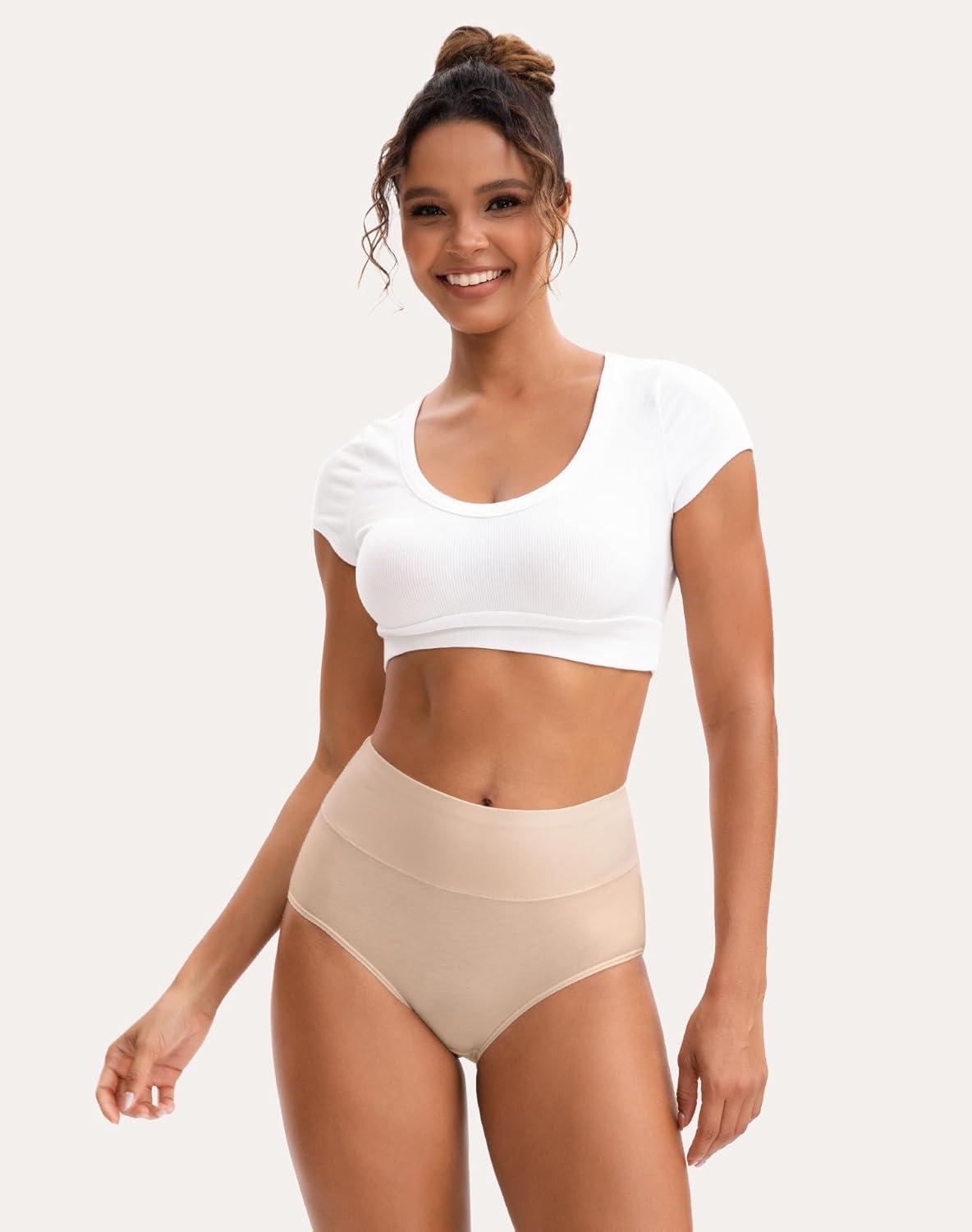 INNERSY Women’s High Waisted Underwear Cotton Panties Regular & Plus Size 5-Pack(Nude)