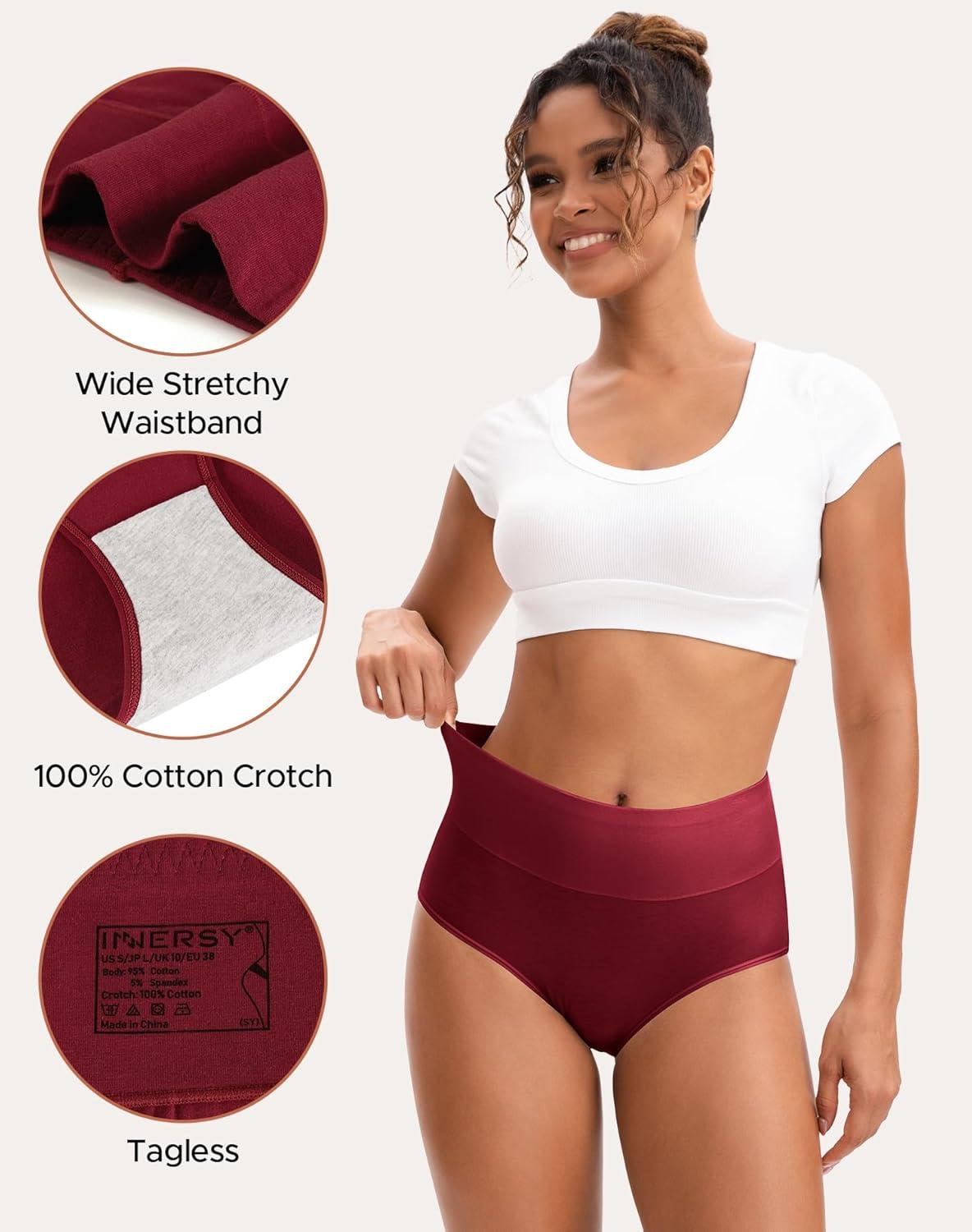 imageINNERSY Womens High Waisted Underwear Cotton Panties Regular ampamp Plus Size 5PackBasics