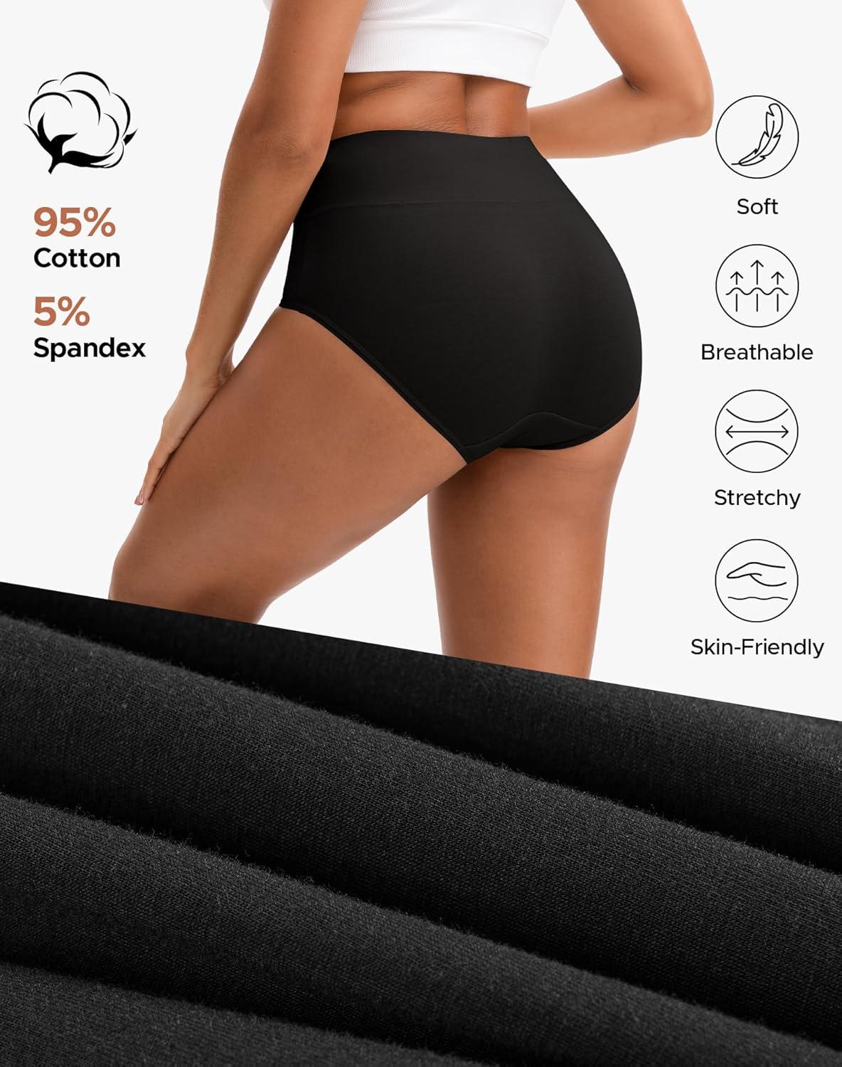 INNERSY Women’s High Waisted Underwear Cotton Panties Regular & Plus Size 5-Pack(Basics)