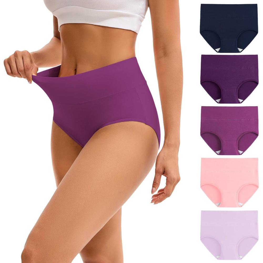 INNERSY Women’s High Waisted Underwear Cotton Panties Regular & Plus Size 5-Pack(Lavender Dreams)