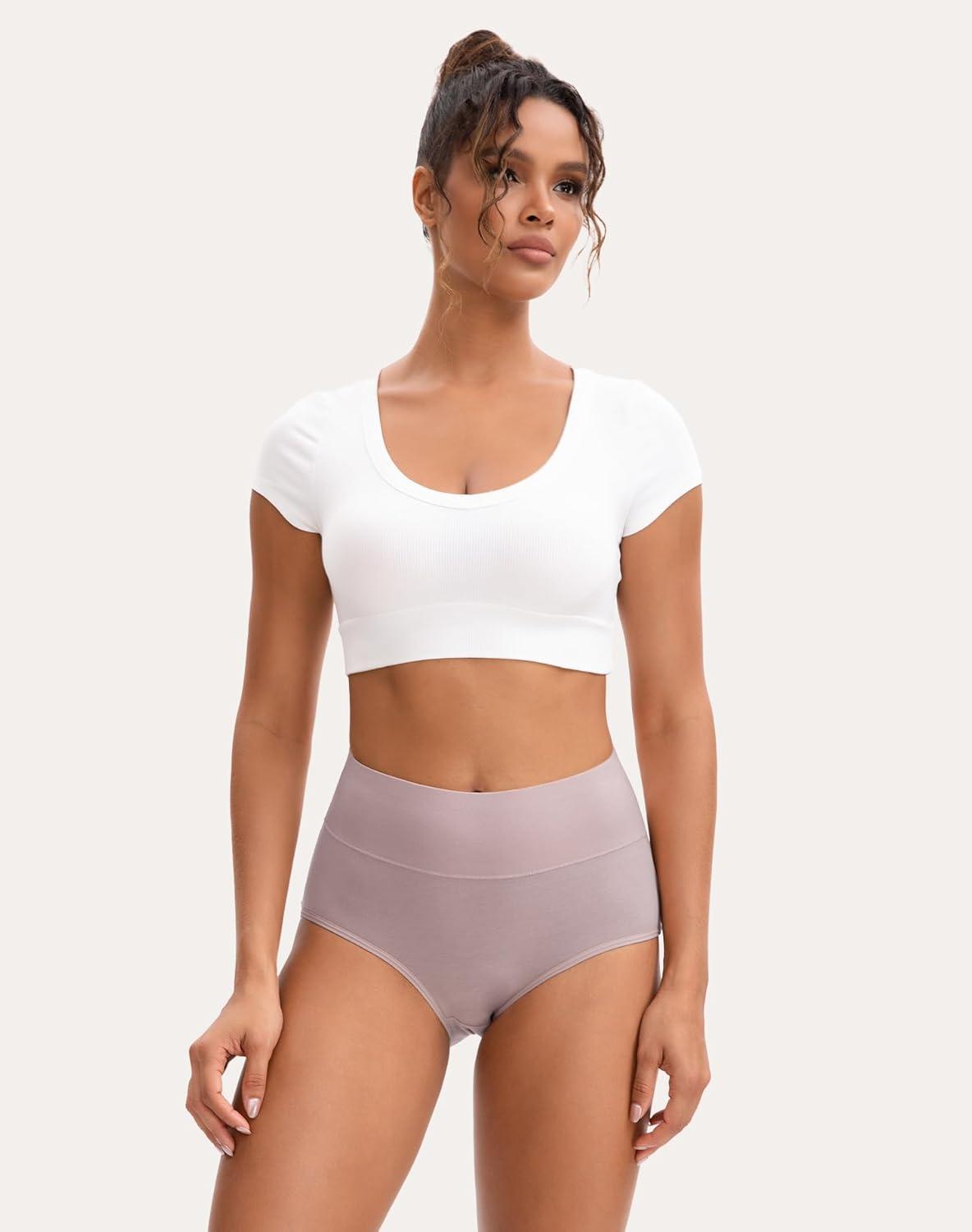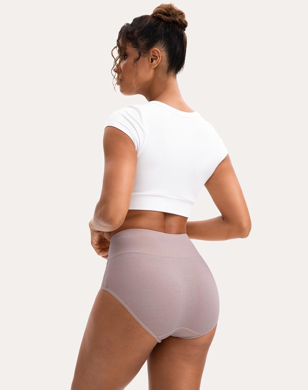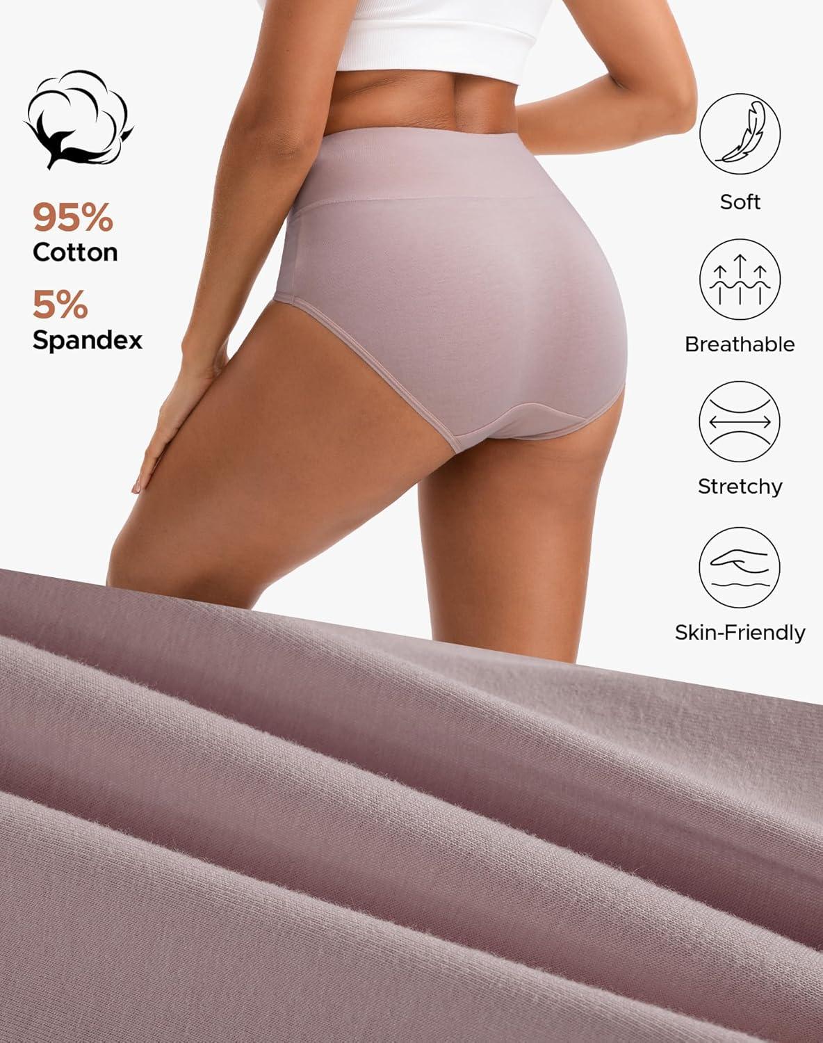 INNERSY Women’s High Waisted Underwear Cotton Panties Regular & Plus Size 5-Pack(Light Mist)