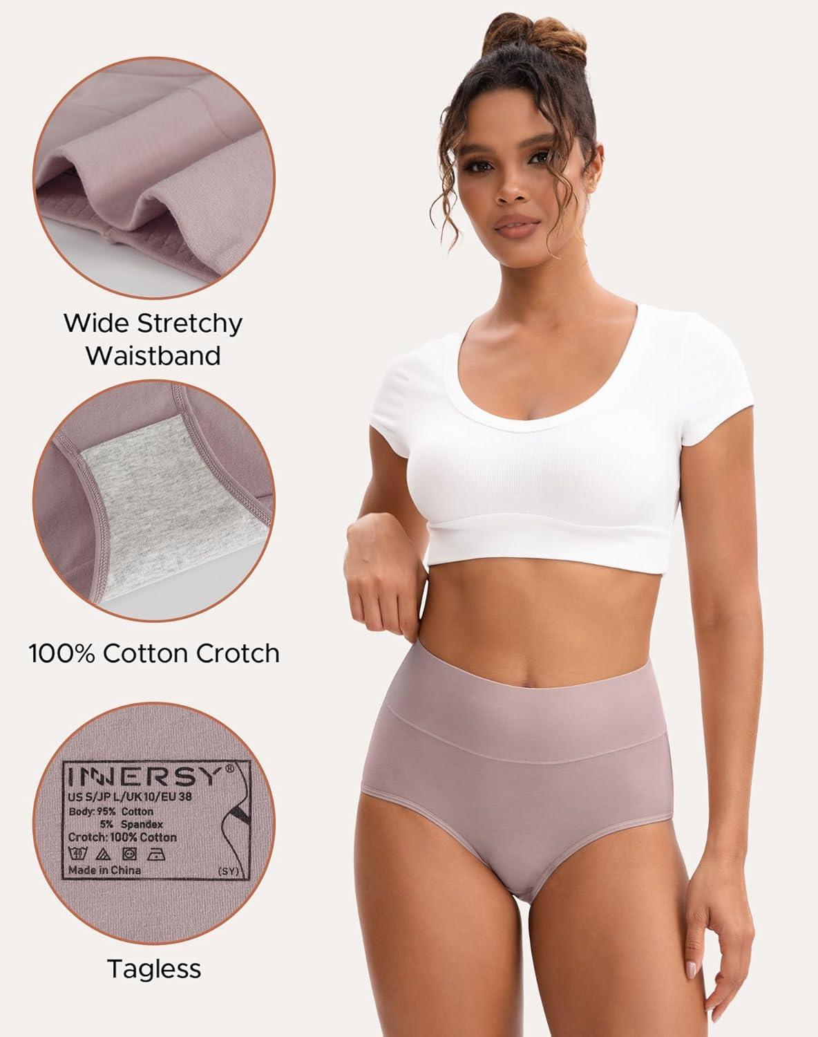imageINNERSY Womens High Waisted Underwear Cotton Panties Regular ampamp Plus Size 5PackStyle 1