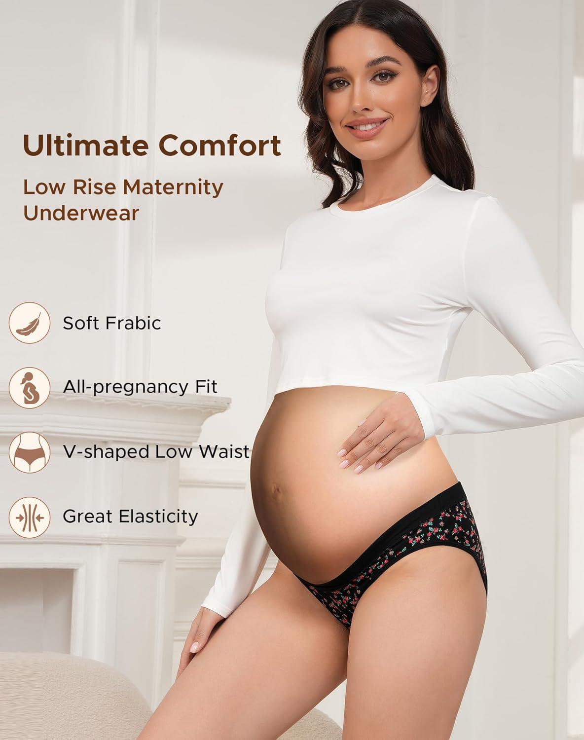INNERSY Women's Maternity Underwear Cotton Plus Size Pregnancy Postpartum Panties 5 Pack(Elegant Dark)