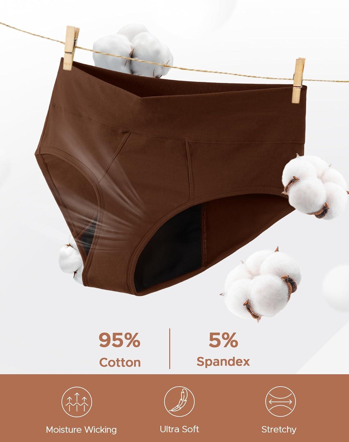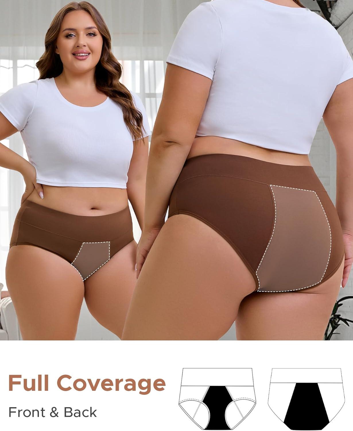 INNERSY Women’s Period Underwear Plus Size Heavy Flow High Waisted Cotton Leak Proof Menstrual Panties 3-Pack(Regal Shadows)