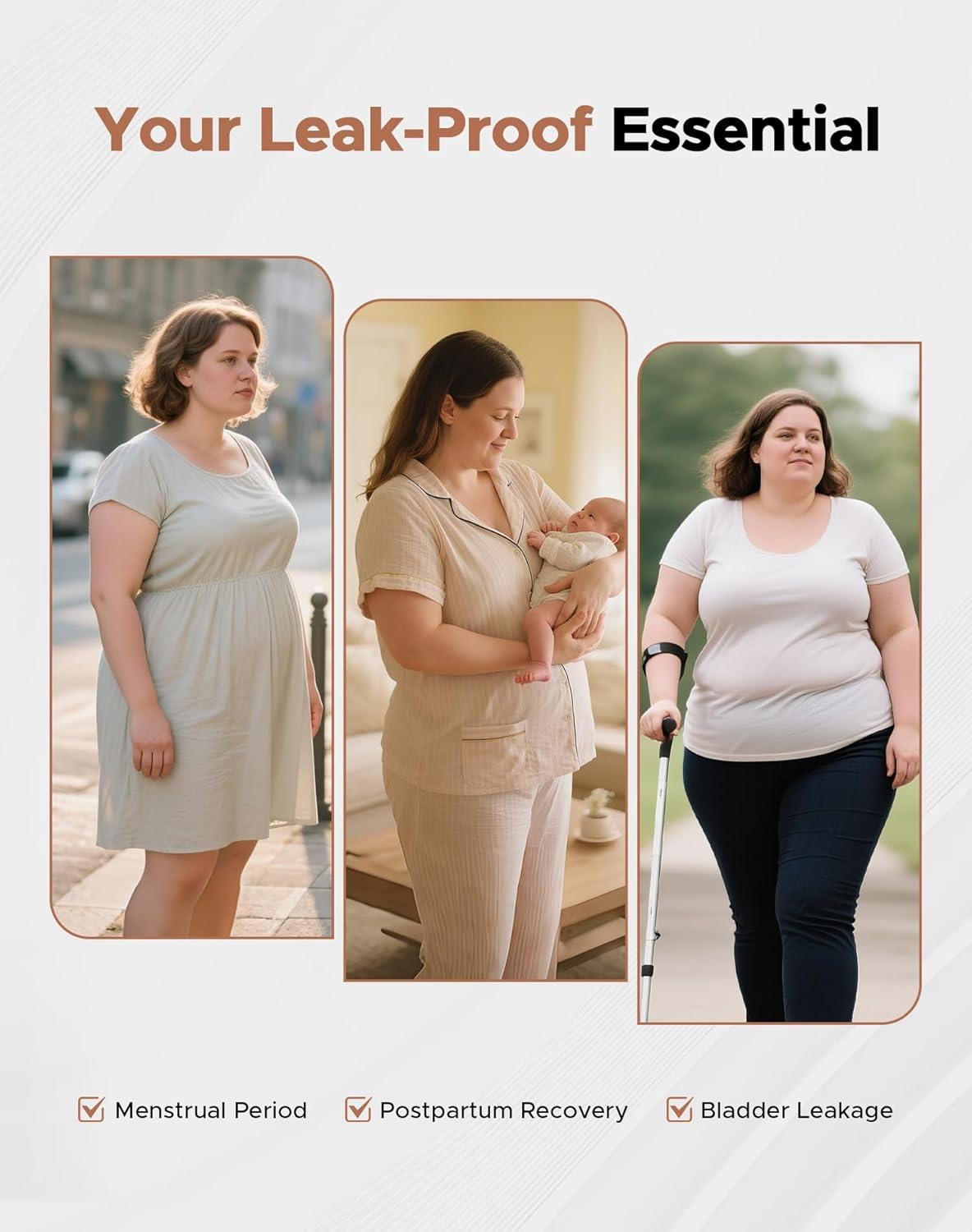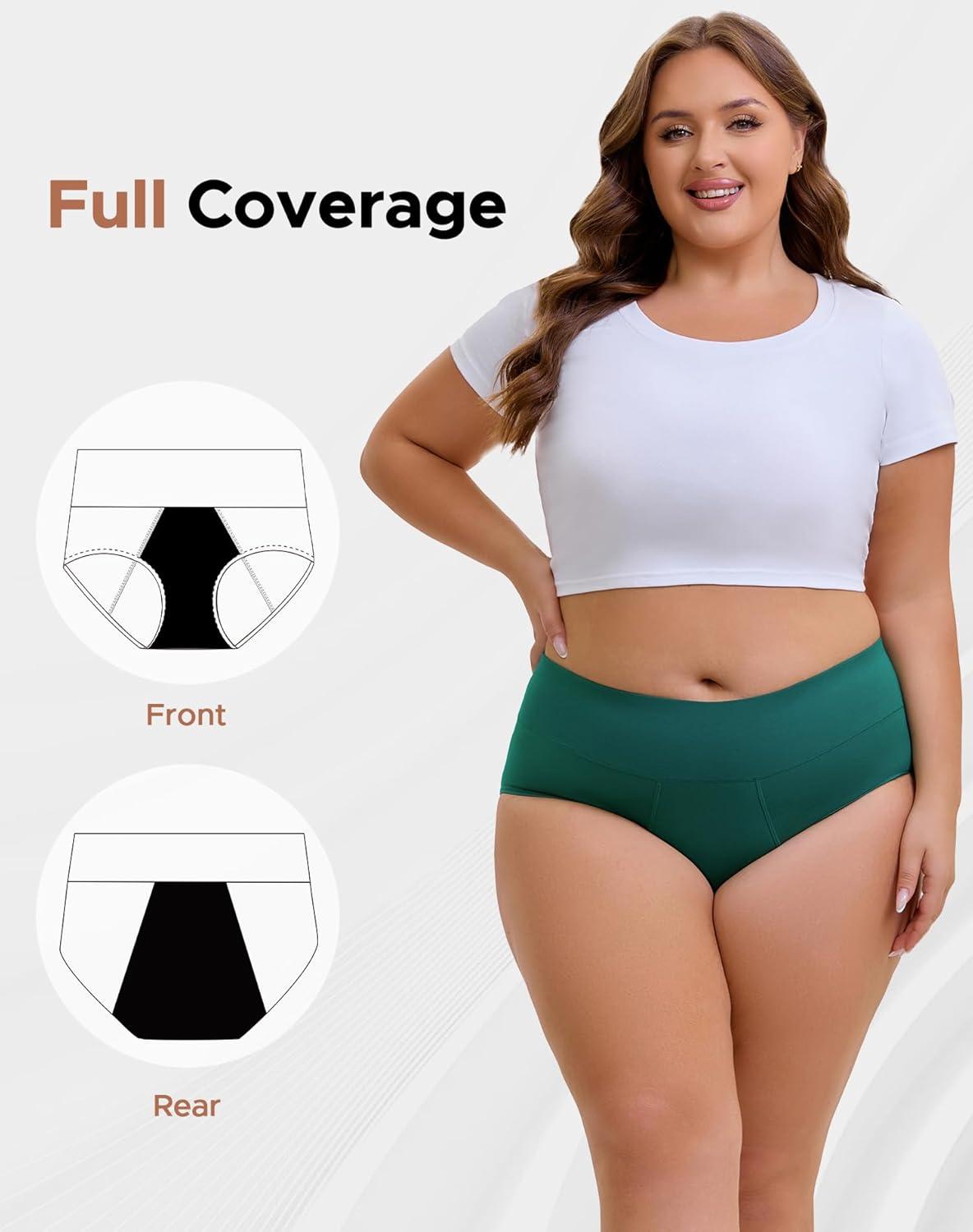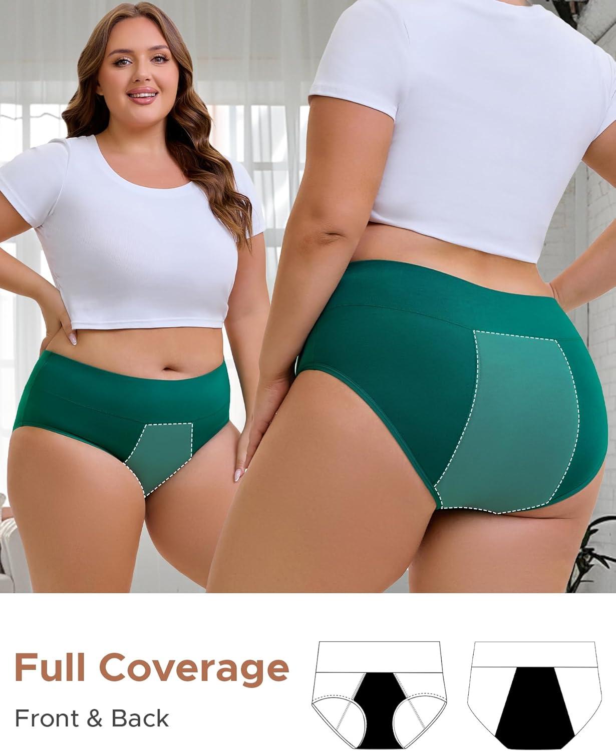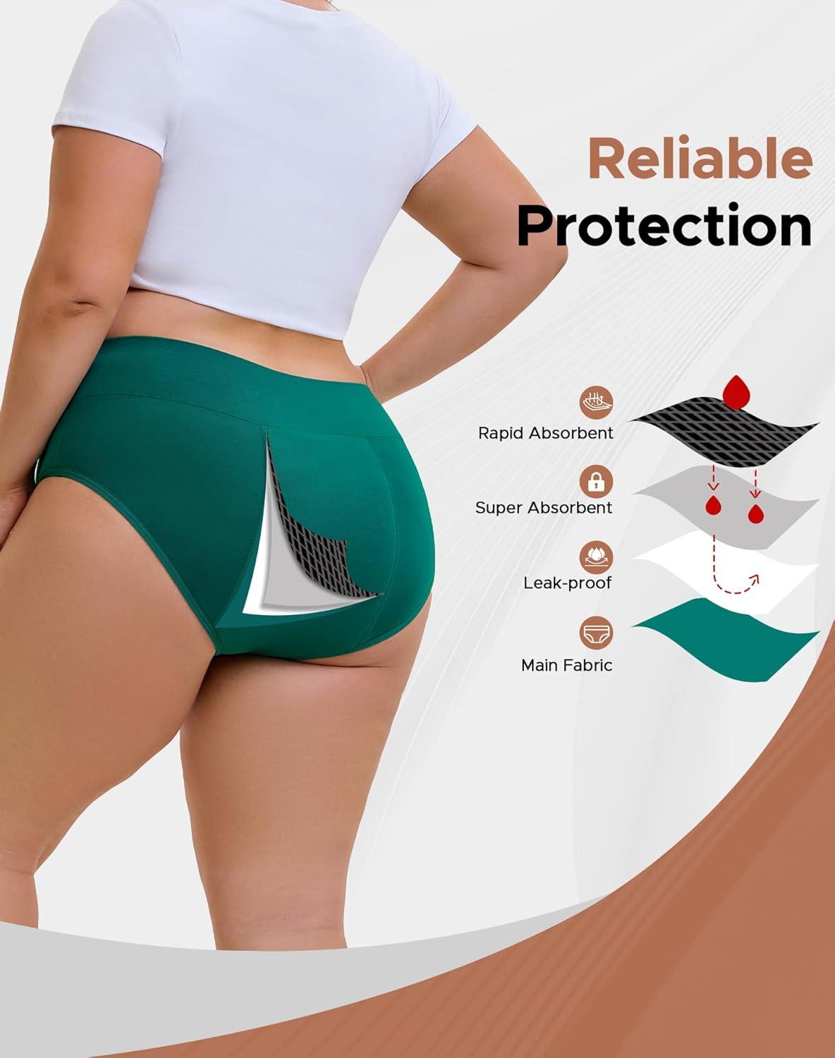 INNERSY Women’s Period Underwear Plus Size Heavy Flow High Waisted Cotton Leak Proof Menstrual Panties 3-Pack(Regal Shadows)