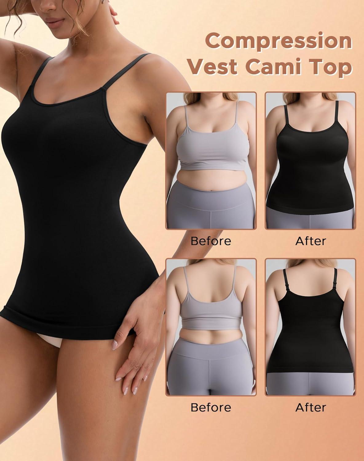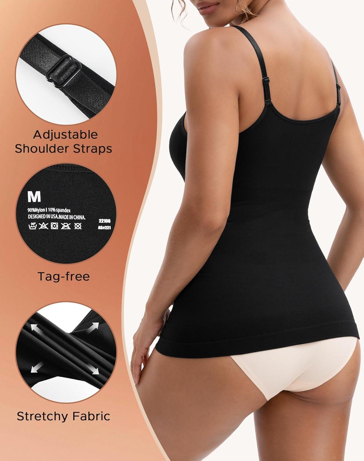 INNERSY Womens Tank Tops Scoop Neck Tummy Control Shapewear Body Shaper Camisole(Black)