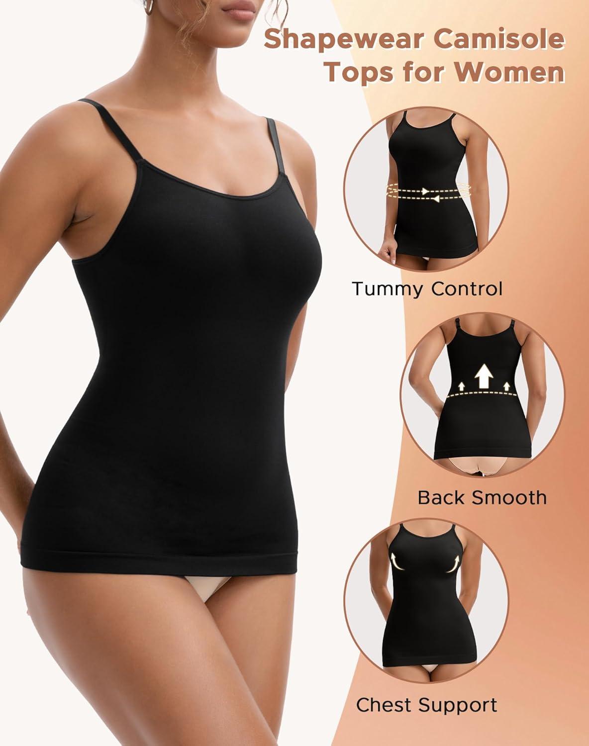 imageINNERSY Womens Tank Tops Scoop Neck Tummy Control Shapewear Body Shaper CamisoleBlack