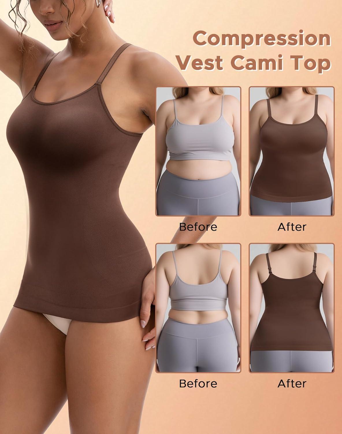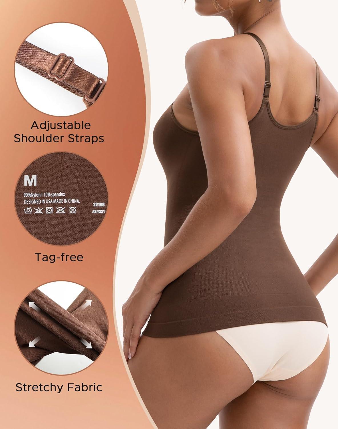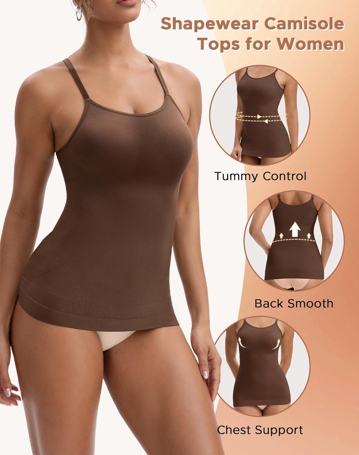 INNERSY Womens Tank Tops Scoop Neck Tummy Control Shapewear Body Shaper Camisole(Brown)